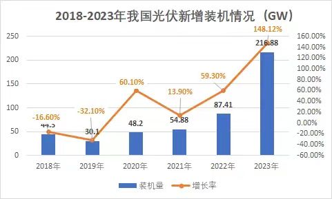 裝機量再度刷新!光伏市場持續(xù)火熱! 1月26日,國家能源局發(fā)布2023年全國電力工業(yè)統(tǒng)計數(shù)據(jù)。2023年1~12月光伏新增裝機216.88GW,同比增長148.12%。 去年,對于光伏行業(yè)來講是爆發(fā)式增